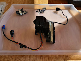 then attach mechanism back to motor, to give you an assembly that can go back in the car now ...