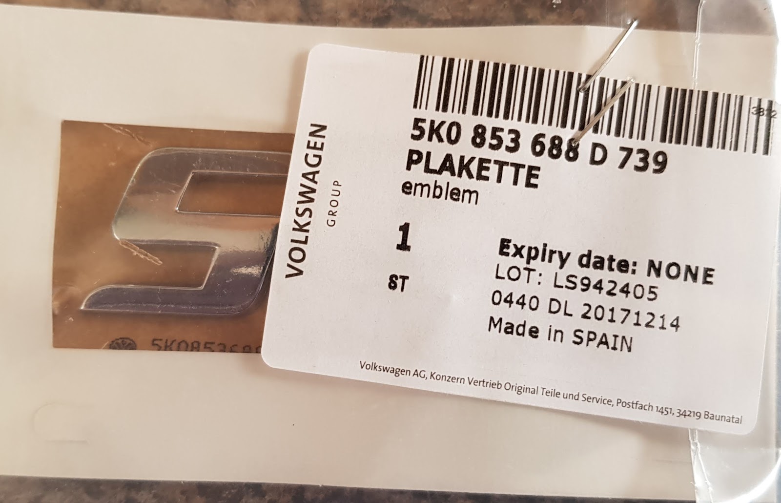 I have no idea if this is a genuine VW part or not, it looks like one but not sure