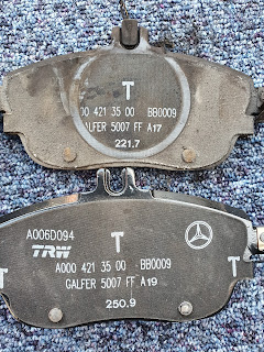Car threw up a warning message after only 18,500 miles ! Seems pretty low for a set of brake pads,but I guess short journeys and drilled discs dont help